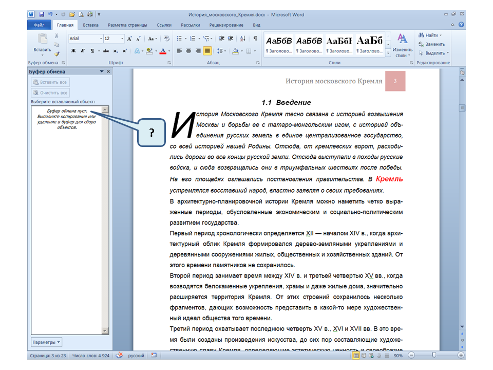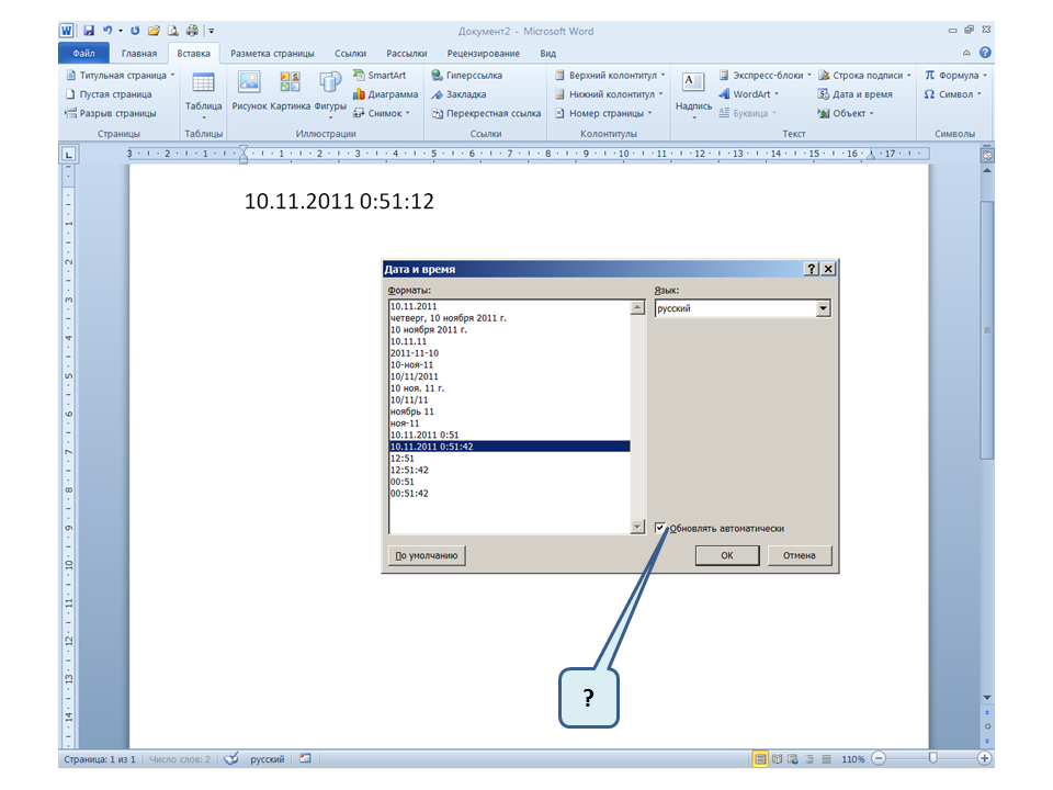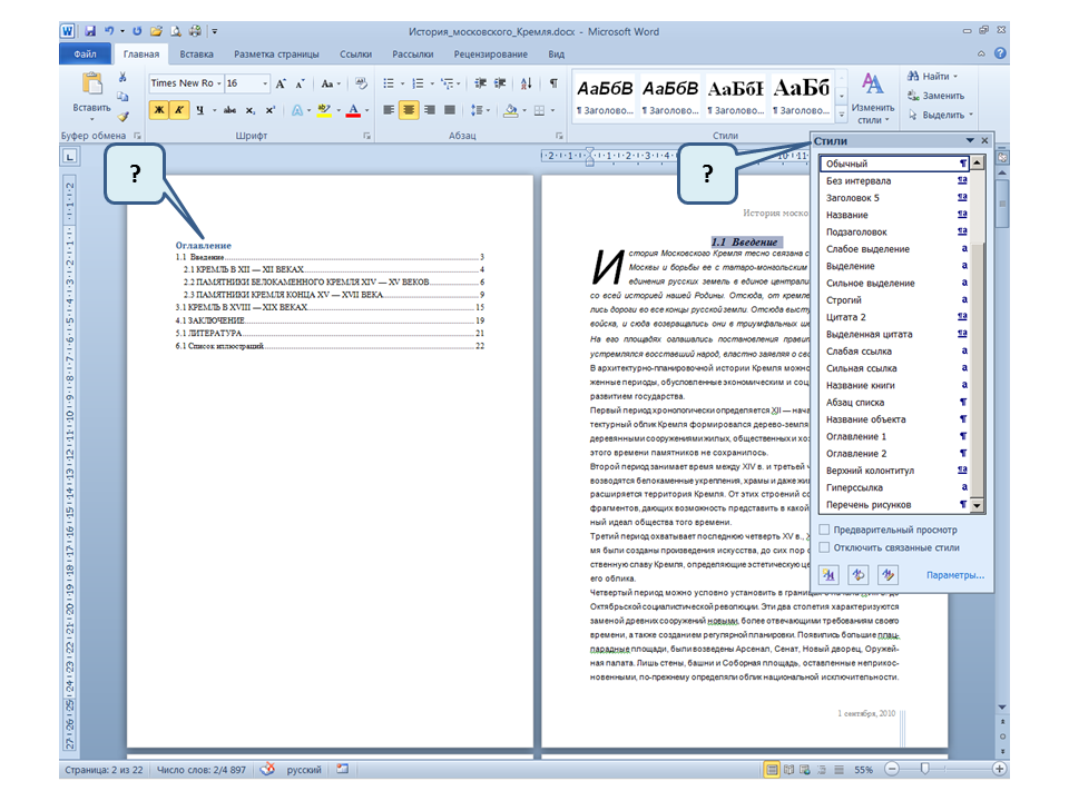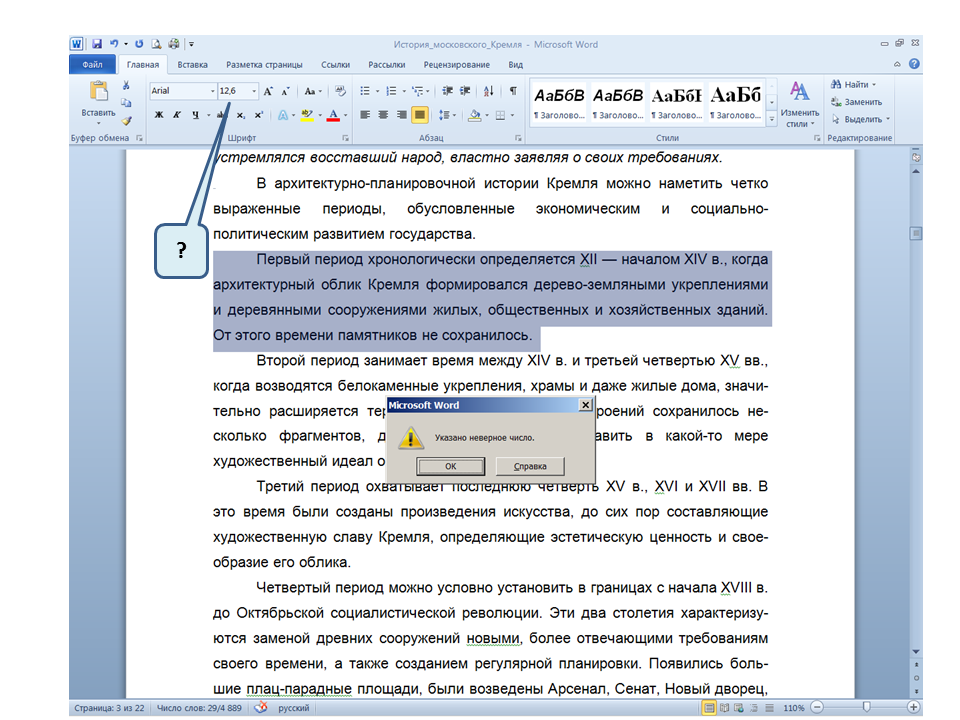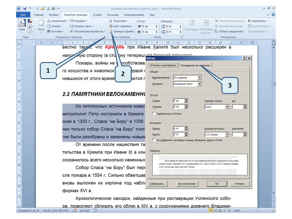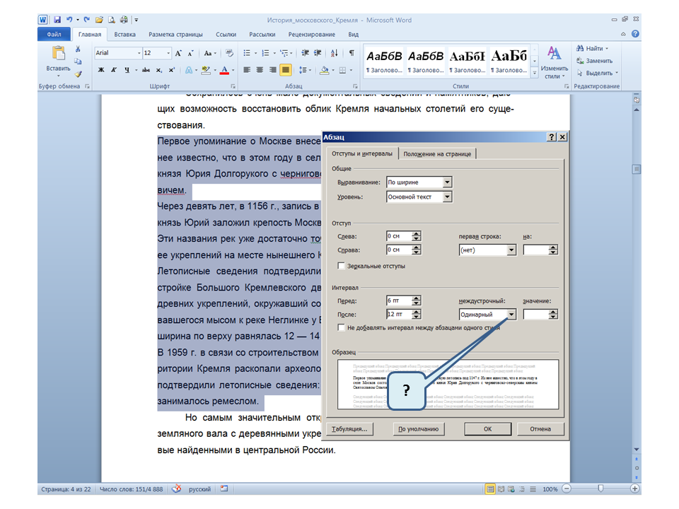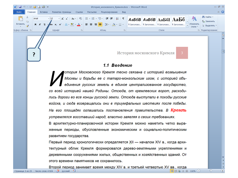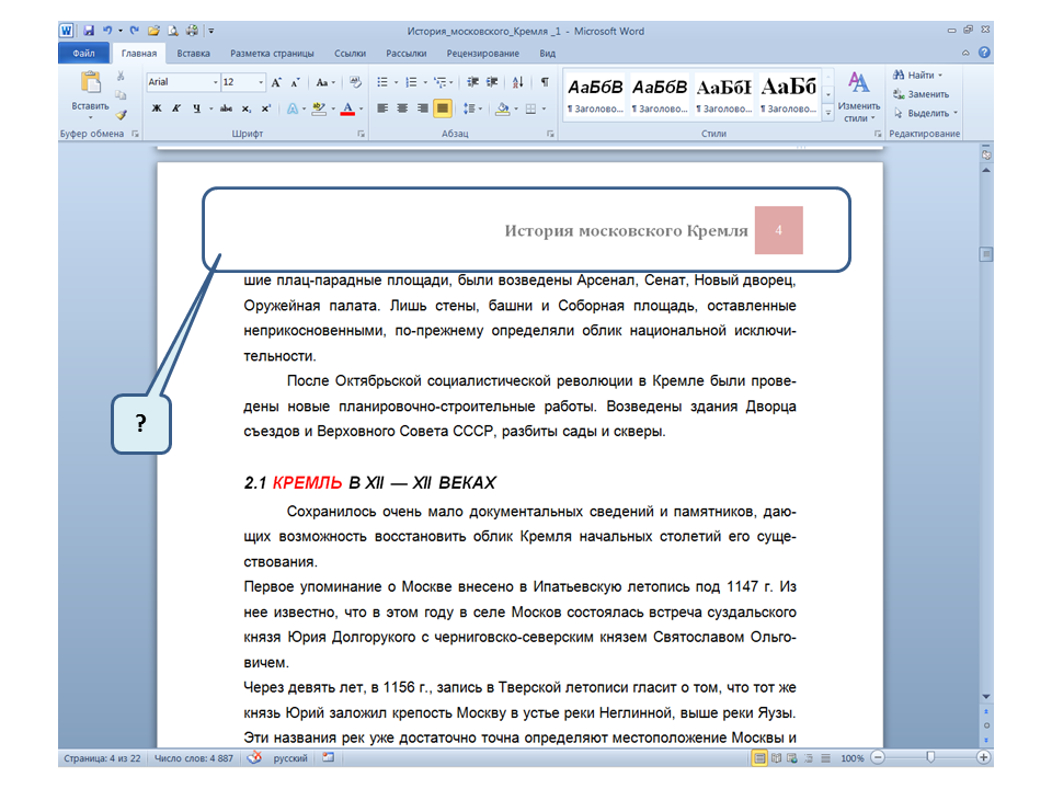 Список вопросов базы знанийПользователь Microsoft Word 2010Вопрос id:14717 Каким элементом горизонтальной линейки следует воспользоваться для установки отступа слева всех строк абзаца, кроме первой строки? ![]() ?) 2 ?) 1 ?) 4 ?) 3 Вопрос id:14718 Каким элементом следует воспользоваться, чтобы отобразить линейку? ![]() ?) Перейти во вкладку Вставка (2) ?) Перейти во вкладку Разметка страницы (1) ?) Воспользоваться значком (4) ?) Перейти во вкладку Вид (3) Вопрос id:14719 Для работы Вы часто используете вставку в документ символов, которых нет на клавиатуре, как ускорить работу, чтобы не переходить на вкладку Вставку? ![]() ?) Нажав последовательно клавиши Alt ⇒ С ⇒ З ?) Добавить значок на Панель быстрого доступа ?) Добавить значок на мини-панель ?) Перетащить значок на вкладку Главная Вопрос id:14720 В каких единицах измеряется размер шрифта в Word? ![]() ?) в миллиметрах ?) в пунктах ?) в сантиметрах ?) в дюймах Вопрос id:14721 В документе установлен автоматический перенос слов, каким элементом следует воспользоваться, чтобы в выделенном абзаце убрать перенос слов? ![]() ?) 1 ?) 3 ?) 2 ?) Это сделать нельзя Вопрос id:14722 В документ вставлена таблица, которая располагается на двух листах, какую Вкладку следует использовать, чтобы каждый лист начинался с заголовка таблицы? ![]() ?) Макет (3) ?) Вставка (1) ?) Конструктор (2) ?) Такой возможности нет, и заголовок нужно копировать Вопрос id:14723 Для приведенной таблицы установлен режим автоподбора (Автоподбор по содержимому). Что произойдет при изменении ориентации страницы (книжная на альбомную)? ![]() ?) Ширина столбцов автоматически измениться ?) Размеры таблицы не изменяться ?) Высота строк и ширина столбцов автоматически измениться ?) Высота строк автоматически измениться Вопрос id:14724 Каким элементом во вкладке Формат можно воспользоваться, чтобы преобразовать вставленный элемент WordArt в такой вид? ![]() ?) 4 ?) 1 ?) 3 ?) 2 Вопрос id:14725 Какой вкладкой следует воспользоваться для разбивки текста на несколько колонок? ![]() ?) Вставка (1) ?) Вид (4) ?) Разметка страницы (2) ?) Рецензирование (3) Вопрос id:14726 При попытке ввести указанный размер шрифта для выделенного абзаца, выдается сообщение «Указано неверное число», в чем причина ошибки? ![]() ?) Размер шрифта должен быть кратным 0,5 ?) Размер шрифта может быть только целым числом ?) Размер шрифта можно выбирать только из списка ?) Такой размер можно набрать, только используя мини-панель Вопрос id:14727 Какой вкладкой следует воспользоваться для вставки сносок в документе? ![]() ?) Главная (1) ?) Ссылки (4) ?) Разметка страницы (3) ?) Вставка (2) Вопрос id:14728 Что можно установить с помощью этого интервала? ![]() ?) Расстояние между абзацами текста ?) Расстояние между строками текста ?) Расстояние между словами текста ?) Расстояние между символами текста Вопрос id:14729 Для каких целей можно использовать указанный элемент? ![]() ?) Для увеличения и уменьшения левого отступа абзаца ?) Для установки отступа первой строки абзаца ?) Для уменьшения левого и правого отступов абзаца ?) Для увеличения левого и правого отступов абзаца Вопрос id:14730 Каким элементом горизонтальной линейки следует воспользоваться для установки отступа слева всех строк абзаца? ![]() ?) 3 ?) 4 ?) 2 ?) 1 Вопрос id:14731 После оформления абзаца (1) вы хотите применить это форматирование к нескольким абзацам (2) и (3) с использованием значка "Формат по образцу", что для этого нужно сделать? ![]() ?) Сделать один щелчок левой клавиш
