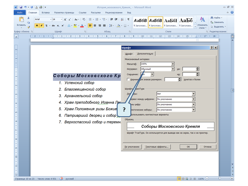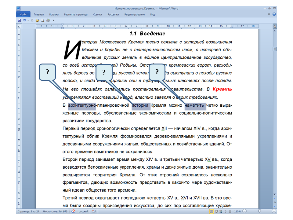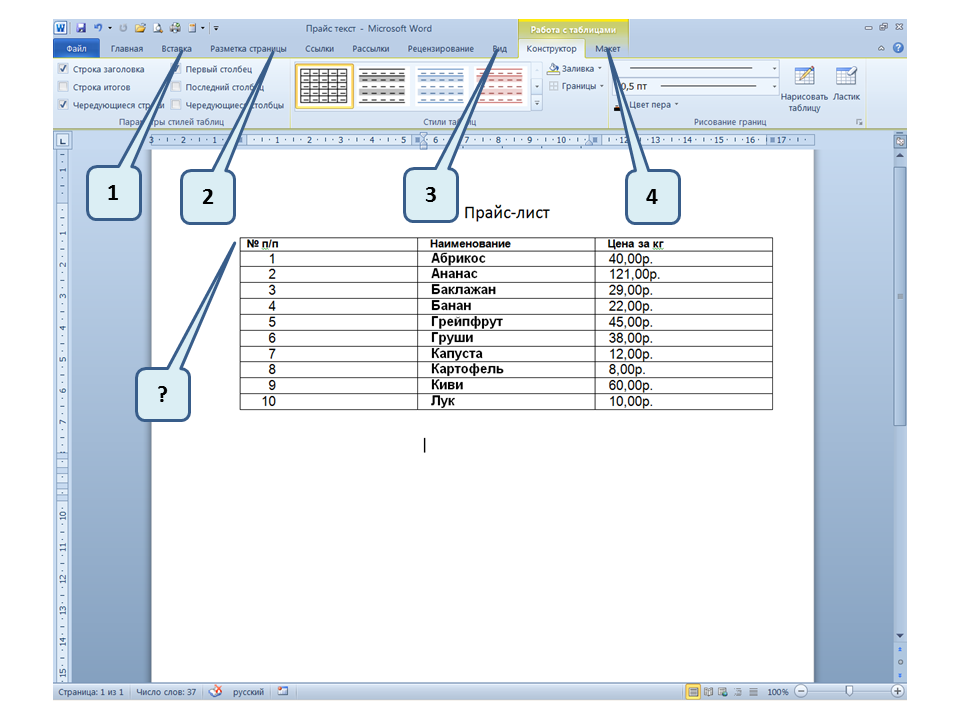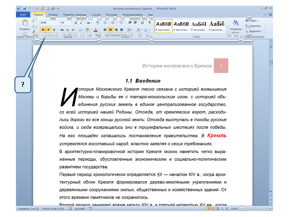 Список вопросов базы знанийПользователь Microsoft Word 2010Вопрос id:14767 Как называется режим обтекания, установленный для рисунка? ![]() ?) В тексте ?) По контору ?) Вокруг рамки ?) За текстом Вопрос id:14768 При открытии нового документа в программе MO Word 2010 на листе отображается сетка. С помощью, какой вкладки её можно убрать? ![]() ?) Вставка (1) ?) Это сделать нельзя, нужно закрыть документ и открыть новый. ?) Разметка страницы (2) ?) Вид (3) Вопрос id:14769 На Ленте во вкладке Главная для всех значков отображаются «Горячие клавиши», каким образом их можно отобразить? ![]() ?) Нажав последовательно клавиши Alt ⇒ Л ?) Нажав последовательно клавиши Alt ⇒ З ?) Нажав последовательно клавиши Alt ⇒ Я ?) Нажав последовательно клавиши Alt ⇒ Ф Вопрос id:14770 В приведенном предложении слово подчеркнуто зеленой волнистой линией, в чем причина и как убрать это подчеркивание? ![]() ?) Для этого слова выбрано начертание Подчёркнутый, линия зеленого цвета, нужно очистить формат ?) В этом предложении ошибка пунктуации, нужно исправить ошибку ?) Для этого слова выбрано оформление - нижняя граница, линия зеленого цвета, нужно очистить формат ?) Один из символов в этом слове написан на английском языке, нужно исправить символ Вопрос id:14771 Как называется режим обтекания, установленный для рисунка? ![]() ?) По контуру ?) За текстом ?) В тексте ?) Вокруг рамки Вопрос id:14772 При поиске в панели навигации выбрана вкладка «Просмотр страниц документа», какие страницы отображаются на панели навигации? ![]() ?) Все страницы документа ?) Только первая страница, где присутствует слово или фраза, которую хотят найти ?) Только текущая страница, где присутствует слово или фраза, которую хотят найти ?) Все страницы, где присутствует слово или фраза, которую хотят найти Вопрос id:14773 Вы хотите разместить в Буфере обмена несколько фрагментов, для этого нужно отобразить Область задач «Буфера обмена», по какому значку нужно щелкнуть мышкой? ![]() ?) 3 ?) 2 ?) 4 ?) 1 Вопрос id:14774 Какой вкладкой следует воспользоваться, чтобы распечатать в документе только выделенный фрагмент? ![]() ?) 4 ?) 2 ?) 3 ?) 1 Вопрос id:14775 Каким маркером следует воспользоваться, чтобы с помощью мышки изменить ширину всех столбцов и высоту всех строк таблицы? ![]() ?) Это сделать нельзя ?) 1 ?) 3 (Ухватившись за внешнюю границу таблицы) ?) 2 Вопрос id:14776 Для каких целей используется эти элементы? ![]() ?) Для задания ширины и высоты выделенных ячеек ?) Для изменения интервалов между ячейками ?) Для задания ширины и высоты выделенного текста в таблице ?) Для задания ширины и высоты выделенной таблицы Вопрос id:14777 Какой вкладкой следует воспользоваться для проверки правописания в документе? ![]() ?) Вид (4) ?) Рецензирование (3) ?) Главная (1) ?) Вставка (2) Вопрос id:14778 Как выделить в тексте несколько слово не подряд? ![]() ?) Последовательно дважды щелкнуть, по словам правой клавишей мышки ?) Последовательно дважды щелкнуть, по словам левой клавишей мышки ?) По первому слову дважды щелкнуть левой клавишей мышки, а по последующим словам дважды щелкнуть левой клавишей мышки с нажатой клавишей Ctrl ?) По первому слову дважды щелкнуть левой клавишей мышки, а по последующим словам два-жды щелкнуть левой клавишей мышки с нажатой клавишей Shift Вопрос id:14779 Для каких целей можно использовать указанный элемент? ![]() ?) Для увеличения или уменьшения размера шрифта ?) Для оформления подстрочных и надстрочных знаков ?) Только для уме