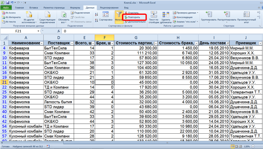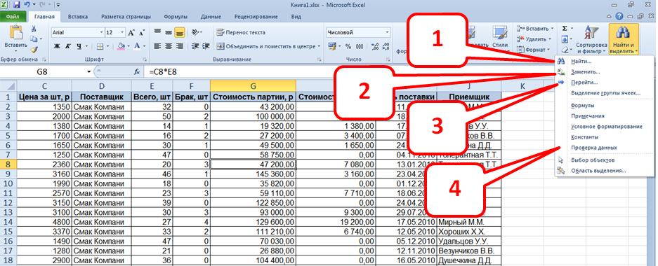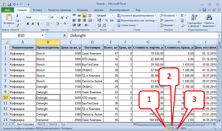 Список вопросов базы знанийПользователь Microsoft Excel 2010