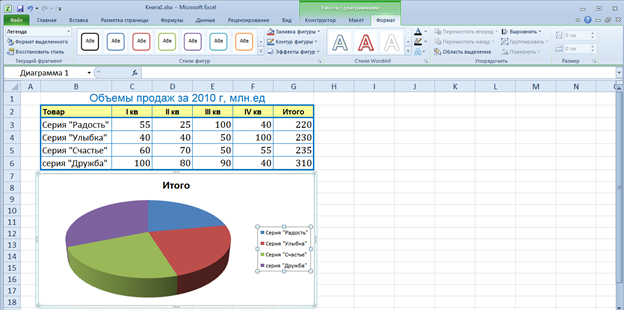 Вопрос id:14838 Необходимо удалить пустой столбец в таблице. Какое предварительно нужно сделать действие, чтобы затем воспользоваться командой «Удалить столбцы с листа» ![]() ?) Выделить любую ячейку из столбца В ?) Выделить любую ячейку из столбца С ?) Выделить столбцы с В по D ?) Выделить любую ячейку из столбца D Вопрос id:14839 В ячейку нужно ввести текущую дату – 17 июня 2010 года 10 часов утра. Выберите правильный вариант ввода ![]() ?) 2 ?) 1 ?) 4 ?) 3 Вопрос id:14840 В ячейки B2 и B5 были введены данные, но при этом выравнивание в ячейках выполнено по-разному. Почему? ![]() ?) В ячейке B5 введен текст, который по умолчанию выравнивается по левому краю ?) В ячейку B2 введено число, которое по умолчанию выравнивается по правому краю ?) Верны оба утверждения Вопрос id:14841 Какие исходные данные обрабатываются по формуле в ячейке E3? ![]() ?) Формула написана неверно – в адресации не хватает нумерации строк ?) С:С – это именованные ячейки, которые суммируются ?) Складывается количество числовых значений в ячейках из столбца С ?) Складываются все числовые значения ячеек из столбца С Вопрос id:14842 Как нужно написать формулы в ячейке E2, чтобы затем скопировать для расчета значений в ячейках Е3:E5? ![]() ?) =C2*D2 ?) =$C$2*D2 ?) =C2*$D$2 ?) =$C$2*$D$2 Вопрос id:14843 Выберите правильный вариант формулы для определения среднего значения окладов по всем должностям ![]() ?) =СРЕДНЕЕЗНАЧЕНИЕ(B2:B10) ?) =СРЗНАЧ(B2:B10) ?) =СРЗНАЧ(B2;B10) ?) =СРЕДНЕЕ(B2:B10) Вопрос id:14844 Какой командой необходимо воспользоваться, чтобы на диаграмме были показаны доли и значения каждого товара? ![]() ?) 1 ?) 2 ?) 3 ?) 4 Вопрос id:14845 Как нужно выделить исходные данные для построения диаграммы, чтобы проанализировать долю годовых продаж каждого наименования от общего годового итога? ![]() ?) Выделить ячейки B2:B6, затем при нажатой клавише Ctrl, выделить ячейки G2:G6 ?) Выделить все ячейки с B2 по G6 ?) Выделить ячейки B2:B6, затем при нажатой клавише Shift, выделить ячейки G2:G6 ?) Выделить ячейки B2, затем при нажатой клавише Ctrl, выделить ячейки G2 Вопрос id:14846 Какую команду необходимо применить, чтобы выделенный диапазон ячеек был преобразован в одну ячейку? ![]() ?) 3 ?) 2 ?) 4 ?) 1 Вопрос id:14847 При просмотре данных таблицы необходимо постоянно на экране видеть данные столбцов А и В. Выберите правильную последовательность действий ![]() ?) Выделить столбцы С, затем выбрать команду 2 ?) Выделить столбцы А:В, затем выбрать команду 2 ?) Выделить столбец С и выбрать команду 1 ?) Выделить столбцы А:В, затем выбрать команду 1 Вопрос id:14848 Какая команда выполнит печать таблицы? ![]() ?) На вкладке Разметка Страницы – Область печати ?) Файл – Печать ?) На вкладке Разметка Страницы – Печать Вопрос id:14849 Где в окне программы располагается «Панель быстрого доступа»? ![]() ?) 1 ?) 3 ?) 2 ?) 4 Вопрос id:14850 Выберите правильный вариант формулы для определения суммы окладов по всем должностям ![]() ?) =СУММ(B2;B10) ?) =СУММ(B2+B10) ?) =СУММ(B2-B10) ?) =СУММ(B2:B10) Вопрос id:14851 Выберите правильную последовательность действий, чтобы применить к выделенным ячейкам пунктирные границы синего цвета ![]() ?) Сперва выбрать «Вид линии», потом «Цвет линии», а затем выбрать нужные «Границы» ?) Сперва выбрать «Вид линии», потом нужные «Границы», а затем выбрать «Цвет линии» ?) Сперва выбрать нужные «Границы», затем «Цвет линии» и «Вид линии» ?) Сперва выбрать нужные «Границы», затем «Вид линии» и «Цвет линии» Вопрос id:14852 Как быстро удалить всё форматирование из выделенных ячеек? ![](