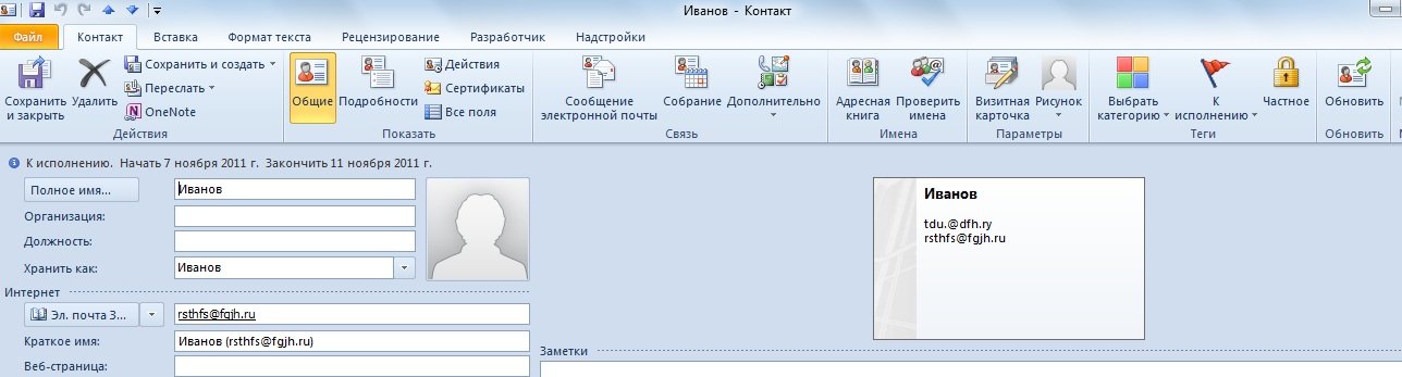 ?) Вставить отсканированное изображение визитной карточки человека. ?) Настроить внешний вид визитной карточки контакта вручную для отображения в представлении «Визитные карточки». Вопрос id:14951 Сколько папок контактов может быть в Outlook? ?) Можно создать любое количество папок контактов. ?) Две личная и глобальный список адресов. ?) До 5-ти папок ?) Только одна папка Контакты. Вопрос id:14952 Для чего нужна пометка «К исполнению» в карточке контакта? ![]() ?) Чтобы создать задачу, связанную с контактом. ?) Чтобы отправить контакту сообщение, которое будет преобразовано в задачу. ?) Чтобы назначить задачу контакту ?) Чтобы все сообщения, отправляемые нами контакту, получали отметку «К исполнению».