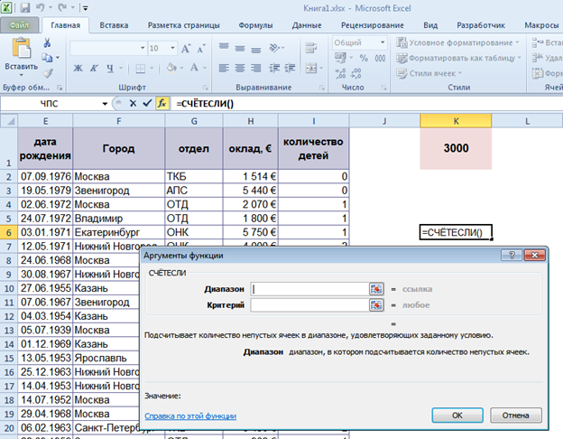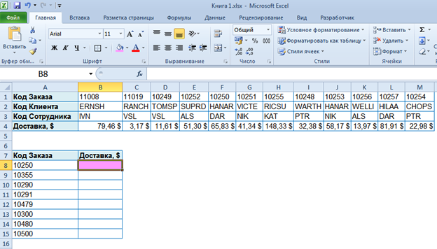 Вопрос id:14995 Какой функцией можно воспользоваться, чтобы удалить лишние пробелы в исходных данных? ![]() ?) СЖПРОБЕЛЫ ?) СЖАТЬПРОБЕЛЫ ?) ПСТР ?) УДАЛПРОБЕЛЫ Вопрос id:14996 Какой формулой можно определить Стоимость консультации для каждого Клиента в зависимости от Кода консультанта? ![]() ?) =ВПР(Е2;J:K;1;0) ?) =ИНДЕКС(J:J;ПОИСКПОЗ(E2;K:K;0)) ?) =ПОИСКПОЗ(E2;K:K;ИНДЕКС(J:J;0)) ?) =ИНДЕКС(J:J;ПОИСКПОЗ(E2;K:K;0);2) Вопрос id:14997 Какими функциями можно воспользоваться, чтобы определить значение Доставка, $ в зависимости от Кода заказа? ![]() ?) ВПР ?) ГПР ?) ПОИСКПОЗ+ИНДЕКС ?) Все варианты подходят Вопрос id:14998 Выберите формулу, которая подсчитает количество сотрудников, работающих в городе Москва и Звенигород. ![]() ?) =СЧЁТЕСЛИ(F:F;"Москва")+СЧЁТЕСЛИ(F:F;"Звенигород") ?) =СЧЁТЕСЛИМН(F:F;"Москва";F:F;"Звенигород") ?) =СЧЁТЕСЛИ(F:F;И("Москва";"Звенигород")) ?) Все варианты правильные Вопрос id:14999 В ячейку была введена формула: =Тарифная_ставка__р_час*Отработано_часов(1-ПодоходныйНалог). Какой будет результат? ![]() ?) #ИМЯ?! ?) #ЗНАЧ! ?) #ССЫЛКА! Вопрос id:15000 Рассчитать премию как процент от оклада, исходя из условия: 33% при окладе свыше 1000$, 22% при окладе от 700$ до 1000$ включительно, 11% при окладе менее 700$.