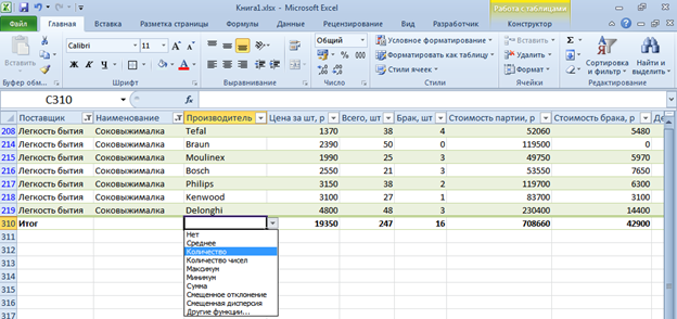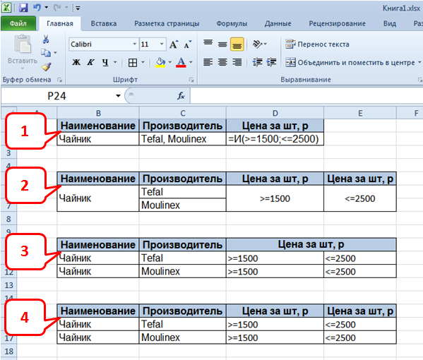 Выберите правильные варианты написания формулы в ячейке С2 для расчета премий всем сотрудникам. ![]() ?) =ЕСЛИ(B2>1000;33%;ЕСЛИ(И(B2>=700;B2<=1000);22%;11%))*B2 ?) =ЕСЛИ(B2>1000;33%;ЕСЛИ(B2<=1000;22%;11%))*B2 ?) =ЕСЛИ(B2>1000;33%;ЕСЛИ(ИЛИ(B2>=700;B2<=1000);22%;11%))*B2 ?) =ЕСЛИ(B2>1000;33%;ЕСЛИ(B2>=700;22%;11%))*B2 Вопрос id:15001 Выберите все правильные варианты, как можно задать условие, для подсчета количества сотрудников, у которых Оклад не менее 3000€. ![]() ?) ">="&K1 ?) ">=3000" ?) ">=K1" ?) ">3000" Вопрос id:15002 Как можно в ячейках столбца "Цена, у.е." преобразовать формулы в значения? ![]() ?) Скопировать ячейки столбца "Цена, у.е." и выбрать в параметрах Вставки "Значения" ?) В диалоговом окне «Изменение связей» выделить источник и выбрать «Разорвать связь» Вопрос id:15003 В ячейках столбца D необходимо получить инициалы сотрудников. Выберите правильное решение. ![]() ?) =ЛЕВСИМВ(A2)&ЛЕВСИМВ(B2)&ЛЕВСИМВ(C2) ?) =СЦЕПИТЬ(ЛЕВСИМВ(A2);ЛЕВСИМВ(B2);ЛЕВСИМВ(C2)) ?) Все формулы правильные ?) =СЦЕПИТЬ(ЛЕВСИМВ(A2;1);ЛЕВСИМВ(B2;1);ЛЕВСИМВ(C2;1)) Вопрос id:15004 Случай считается гарантийным, если Серия равна 1, а Номер – 1000, 1002, 1004. Выберите формулу, которая позволит при гарантийных случаях в ячейках вывести значение Да, в противном случае – отсутствие значения. ![]() ?) =ЕСЛИ(И(B2=1;ИЛИ(C2=1000;C2=1002;C2=1004));"Да";"") ?) =ЕСЛИ(B2=1;ИЛИ(C2=1000;C2=1002;C2=1004);"Да";"") ?) =ЕСЛИ(ИЛИ(B2=1;C2=1000;C2=1002;C2=1004);"Да";"") ?) =И(B2=1;ИЛИ(C2=1000;C2=1002;C2=1004)) Вопрос id:15005 В таблице установлен фильтр по полю Отдел. Если в первую ячейку столбца Коэф-т надбавки ввести значение 2 и скопировать. Что произойдет? ![]() ?) При заполнении данных с помощью «маркера автозаполнения» появится возможность выбора – для всех ячеек или только для видимых ?) Значение 2 будет скопировано только в видимые ячейки столбца Коэф-т надбавки ?) Значение 2 будет скопировано во все ячейки столбца Коэф-т надбавки Вопрос id:15006 В таблице были установлены фильтры по полям Наименование и Производитель. Каков будет результат, если выделить полученные записи и скопировать на новый лист? Выберите неправильное утверждение. ![]() ?) Если выделить целиком строки результата, то будут скопированы строки целиком ?) Будут скопированы строки таблицы с 1 по 269 ?) Если выделить только диапазон результата, то будут скопированы только видимые строки Вопрос id:15007 В таблице установлен фильтр по Наименованию. Что произойдет, если выполнить сортировку «от А до Я» по полю Производитель? ![]() ?) Будут отсортированы записи всего столбца Производитель ?) Будут отсортированы только видимые записи Производителя ?) Нельзя сортировать результаты фильтрации, т.к. это приводит к искажению данных Вопрос id:15008 Какую команду нужно выбрать, чтобы создать запрос к базе данных Microsoft Access? ![]() ?) 1 ?) 2 ?) Excel не поддерживает запросы из Access, только импорт всей таблицы Вопрос id:15009 Из таблицы отобразить данные по наименованию Чайник от производителей Tefal и Moulinex, с ценой от 1500 до 2500 р. включительно. Выберите правильный вариант таблицы условий для решения задачи с помощью расширенного фильтра. ![]() ?) 3 ?) 4 ?) 1 ?) 2 Вопрос id:15010 Какая функция будет использована по умолчанию программой, если добавить поле Город в область макета Значения ![]() ?) Количество ?) Сумма ?) Никакая, т.к. поле Город уже используется в области Названия столбцов Вопрос id:15011 Как можно в отчет сводной таблицы добавить итоги по годам? ![]() ?) На вкладке Параметры выбрать Промежуточные итоги ?) В контекстном меню для ячейки со значением года выбрать Промежуточный итог “Годы” ?) Подходят