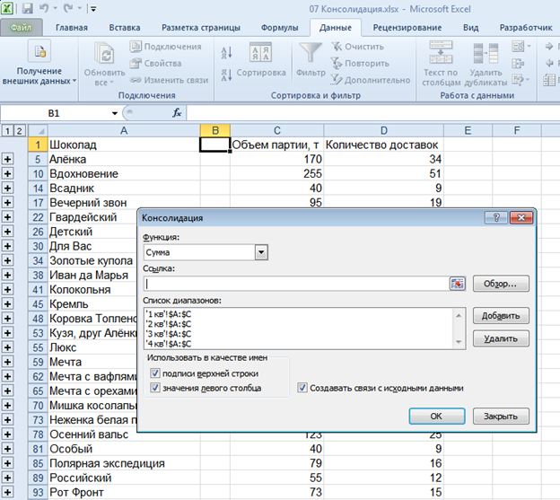 Список вопросов базы знанийСпециалист Microsoft Excel 2010