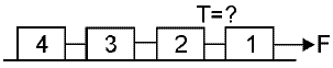 ?) g(m1+ m2+ m3+ m4) ?) g(m2+ m3+ m4) ?) gm2 Вопрос id:360668 Тема/шкала: Механика Четыре одинаковых бруска массой по 1 кг каждый (см.рис) движутся по гладкой горизонтальной поверхности (μ = 0) под действием горизонтальной силы 10 Н с некоторым ускорением. Определите силу натяжения нити между первым и вторым брусками (Н).