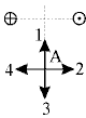 ?) 4 ?) 2 ?) 3 ?) 1 Вопрос id:362024 Тема/шкала: Электричество и магнетизм По двум параллельно расположенным проводникам одинаковые по величине токи текут в противоположных направлениях, как показано на рисунке. Определите направление индукции образованного ими магнитного поля в точке А.