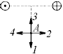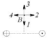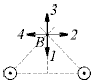 ?) 4 ?) 2 ?) 3 ?) 1 Вопрос id:362023 Тема/шкала: Электричество и магнетизм По двум параллельно расположенным проводникам одинаковые по величине токи текут в одном направлении, как показано на рисунке. Определите направление индукции образованного ими магнитного поля в точке В.