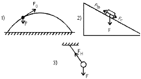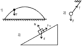 ?) на рис.3 ?) на рис.2 ?) на рис.1 ?) на всех рисунках неправильно Вопрос id:360717 Тема/шкала: Механика На каком из рисунков неправильно показаны направления действующих на тело сил? ![]() ?) на рис.1 ?) на рис.2 ?) на всех рисунках правильно ?) на всех рисунках неправильно Вопрос id:360718 Тема/шкала: Механика Пружиной, имеющей жесткость k и сжатой на x, к стене прижимается брусок массой m. Коэффициент трения между бруском и стеной равен μ. Укажите выражение для подсчета максимального значения массы бруска, при котором он еще не будет скользить по стене ?) μkx/g ?) kx/μg ?) kg/μx ?) μg/kx Вопрос id:360719 Тема/шкала: Механика При увеличении угла наклона плоскости до 30° тело массой 5 кг, находящееся на ней, начало скользить. Какая сила (Н) потребуется для равномерного втаскивания этого тела вверх по наклонной плоскости? ?) 50 ?) 15 ?) 20 ?) 30 Вопрос id:360720 Тема/шкала: Механика На гладкой горизонтальной поверхности лежат четыре бруска, связанных между собой невесомыми и нерастяжимыми нитями. При этом m1=m2=10 кг, m3=m4=5 кг. Вся система под действием горизонтальной силы движется вправо с ускорением 1 м/с2. Какова сила натяжения между первым и вторым брусками (Н)? ![]() ?) 20 ?) 5 ?) 10 ?) 30 Вопрос id:360721 Тема/шкала: Механика Груз какой массы (кг) можно поднять с помощью установки, изображенной на рисунке? (Рычаг и блок, невесомые.)