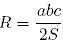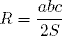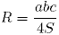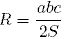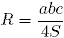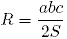 , где а, b, c - стороны треугольника, а S его площадь