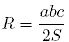 , где а, b, c - стороны треугольника, а S его площадь;