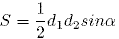 , где d1 и d2 диагонали четырехугольника, α угол между d1 и d2