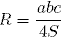 , где а, b, с- стороны треугольника, а S - его площадь