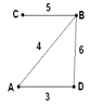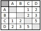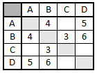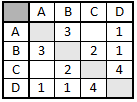 В таблице приведена стоимость перевозки пассажиров между соседними населенными пунктами. Укажите схему, соответствующую таблице.