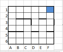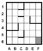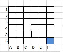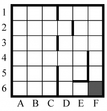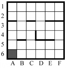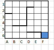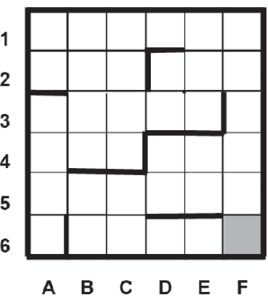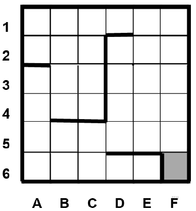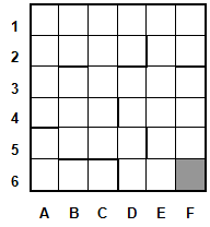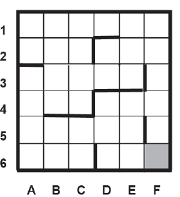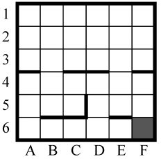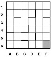 Цикл ПОКА <условие> последовательность команд КОНЕЦ ПОКА выполняется, пока условие истинно. В конструкциях ПОКА условие может содержать команды проверки, а также слова И, ИЛИ, НЕ. Схема лабиринта: Сколько клеток лабиринта соответствуют требованию, что, начав движение в ней и выполнив предложенную программу, РОБОТ уцелеет и остановится в закрашенной клетке (клетка F6)? НАЧАЛО ПОКА <снизу свободно ИЛИ справа свободно> ПОКА <снизу свободно> вниз КОНЕЦ ПОКА вправо КОНЕЦ ПОКА КОНЕЦ