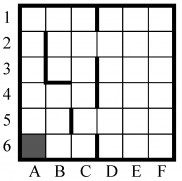 Если РОБОТ начнёт движение в сторону находящейся рядом с ним стены, то он разрушится и программа прервётся. Сколько клеток лабиринта соответствуют требованию, что, начав движение в данной клетке и выполнив предложенную программу, РОБОТ уцелеет и остановится в закрашенной клетке (клетка F6)?