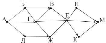 Сколько существует различных путей из города А в город М? Вопрос id:396809 Тема/шкала: B15-Поиск путей в графе-Поиск количества путей