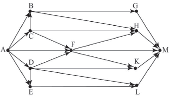 Вопрос id:396815 Тема/шкала: B15-Поиск путей в графе-Поиск количества путей На рисунке изображена схема дорого, связывающих города A, B, C, D, E, F, G, H, K, L, M. По каждой дороге можно двигаться только в одном направлении, указанном стрелкой. Сколько существует различных путей из города A в город M?