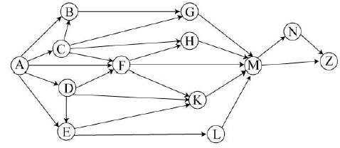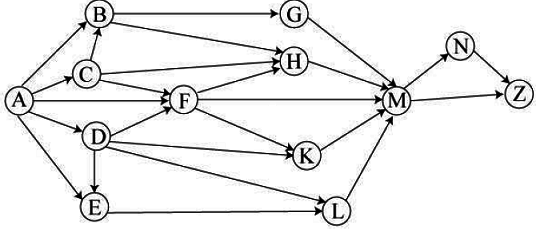 Вопрос id:396847 Тема/шкала: B15-Поиск путей в графе-Поиск количества путей На рисунке – схема дорог, связывающих города A, B, C, D, E, F, G, H, K, L, M, N, Z. По каждой дороге можно двигаться только в одном направлении, указанном стрелкой. Сколько существует различных путей из города A в город Z?