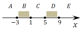 Последовательно выполните следующее. 1. Перерисуйте и заполните таблицу, которая показывает, как работает программа при аргументах, принадлежащих различным областям (A, B, C, D и E). Границы (точки –3, 1, 5 и 9) принадлежат заштрихованным областям (B и D соответственно).