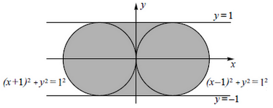 Требовалось написать программу, при выполнении которой с клавиатуры считываются координаты точки на плоскости (x, y — действительные числа) и определяется принадлежность этой точки заданной закрашенной области (включая границы).