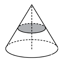 Объем конуса равен 16. Через середину высоты параллельно основанию конуса проведено сечение, которое является основанием меньшего конуса с той же вершиной. Найдите объем меньшего конуса. Вопрос id:398875 Тема/шкала: B13-Стереометрия-Конус