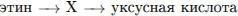 ?) ацетат натрия ?) этанол ?) ацетон ?) этановая кислота Вопрос id:405867 Тема/шкала: B17-Взаимосвязь углеводородов и кислородосодержащих органических соединений Веществом X в схеме превращений