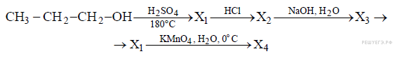 Напишите уравнения четырёх описанных реакций. Вопрос id:407363 Тема/шкала: С2-Взаимосвязь различных классов неорганических веществ: описание реакций Оксид хрома(VI) прореагировал с гидроксидом калия. Полученное вещество обработали серной кислотой, из образовавшегося раствора выделили соль оранжевого цвета. Эту соль обработали бромоводородной кислотой. Полученное простое вещество вступило в реакцию с сероводородом. Напишите уравнения четырёх описанных реакций. Вопрос id:407364 Тема/шкала: С3-Взаимосвязь органических соединений Напишите уравнения реакций, с помощью которых можно осуществить превращения: