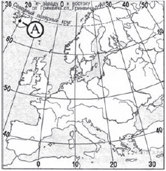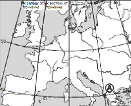 ?) 10° с. ш. и 45° з. д. ?) 10° с. ш. и 45° в. д. ?) 45° с. ш. и 10° в. д. ?) 45° с. ш. и 10° з. д. Вопрос id:413050 Тема/шкала: 01.Географические модели. Карта и план местности Какие географические координаты имеет точка, обозначенная на карте буквой А? ?) 65° с. ш. и 20° в. д. ?) 65° с. ш. и 20° з. д. ?) 20° с. ш. и 65° в. д. ?) 20° с. ш. и 65° з. д. Вопрос id:413051 Тема/шкала: 01.Географические модели. Карта и план местности Какие географические координаты имеет точка, обозначенная на карте буквой А?