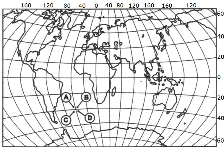 ![]() ?) 4 ?) 1 ?) 2 ?) 3 Вопрос id:413024 Тема/шкала: 01.Географические модели. Карта и план местности Какой буквой на карте мира обозначена точка, имеющая координаты 35° ю.ш. и 17° з.д.?