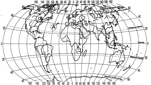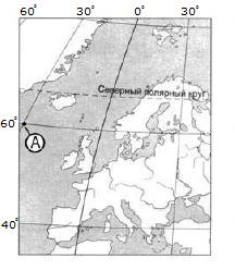 ?) 70º с.ш. 60º в.д. ?) 60º с.ш. 70º з.д. ?) 60º с.ш. 70º в.д. ?) 70º с.ш. 60º з.д. Вопрос id:413070 Тема/шкала: 01.Географические модели. Карта и план местности Какие географические координаты имеет точка, обозначенная на карте Евразии буквой А?