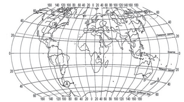 ?) 60° ю. ш. и 40° з. д. ?) 60° ю. ш. и 40° в. д. ?) 40° ю. ш. и 60° з. д. ?) 40° ю. ш. и 60° в. д. Вопрос id:413052 Тема/шкала: 01.Географические модели. Карта и план местности Какие географические координаты имеет точка, обозначенная на карте буквой А?