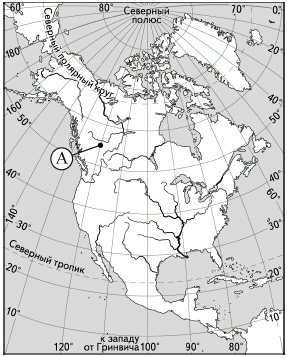 ?) 25º ю. ш. 120º з. д. ?) 35º ю. ш. 120º з. д. ?) 35º ю. ш. 120º в. д. ?) 25º ю. ш. 120º в. д. Вопрос id:413067 Тема/шкала: 01.Географические модели. Карта и план местности Какие географические координаты имеет точка, обозначенная на карте Северной Америки буквой А?