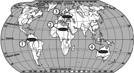 ?) Австралия ?) Великобритания ?) Бельгия ?) Италия Вопрос id:413720 Тема/шкала: 10.Географические особенности размещения населения Какой из регионов, обозначенных цифрами на карте мира, является наиболее густонаселённым?