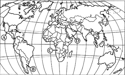 ?) A ?) C ?) B ?) D Вопрос id:413928 Тема/шкала: B14-Современная политическая карта мира Какой буквой на карте мира обозначено государство Мексика?