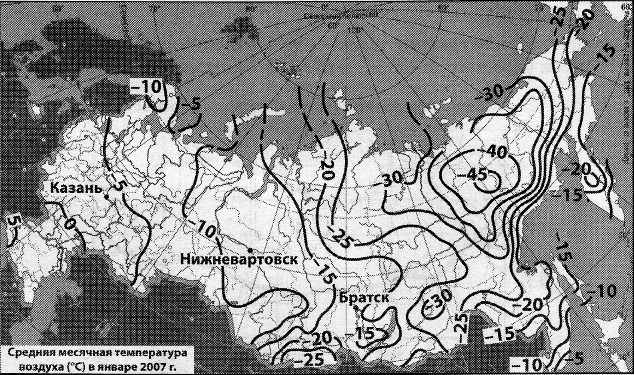 ![]() Вопрос id:414622 Тема/шкала: 17.Погода и климат. Распределение тепла и влаги на Земле С помощью карты сравните средние январские температуры в городах Казань, Братск, Нижневартовск. Расположите эти города в порядке понижения средних январских температур.