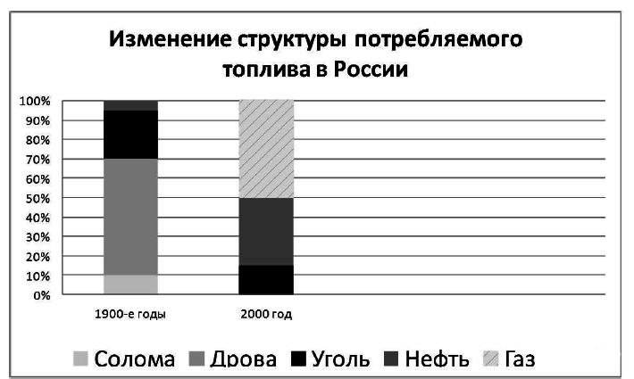 Вывод А: В 1900-е годы в России уголь использовался чаще, чем другие виды топлива. Вывод Б: В 2000 г. доля угля в топливно-энергетическом балансе России существенно снизилась в сравнении с 1900-ми годами.