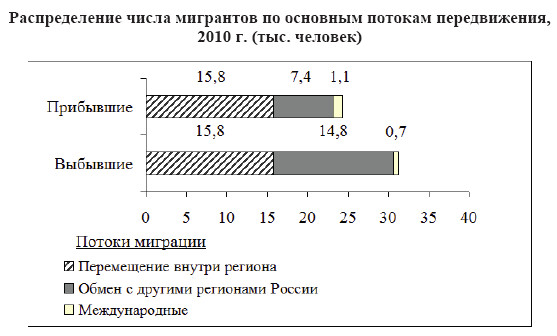 Вопрос id:414856 Тема/шкала: 21.Направление и типы миграции населения России Используя данные диаграмм, определите величину миграционного прироста населения Смоленской области в 2010 г. Ответ запишите цифрами. Распределение числа мигрантов по основным потокам передвижения, 2010 г. (тыс. человек)