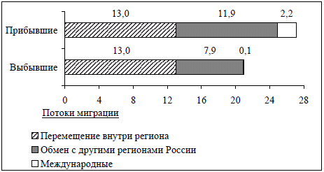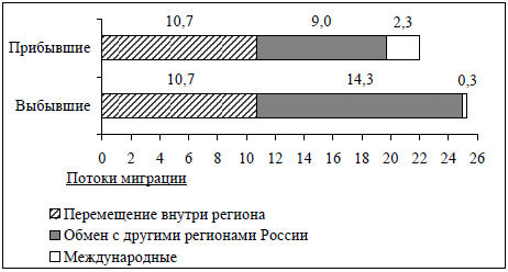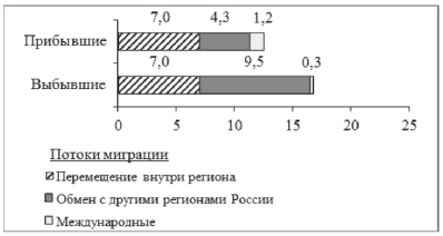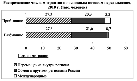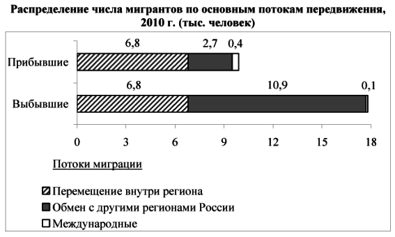 Вопрос id:414862 Тема/шкала: 21.Направление и типы миграции населения России Используя данные диаграмм, определите величину миграционного прироста населения Еврейской АО в 2011 г. Ответ запишите цифрами. Распределение числа мигрантов по основным потокам передвижения, 2011 г. (тыс. человек)