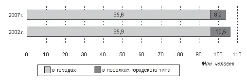 Численность населения городов и поселков городского типа России (млн человек)