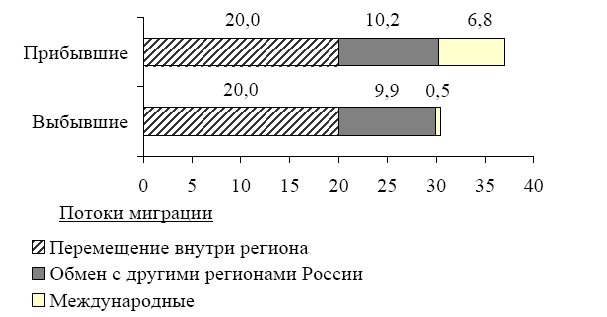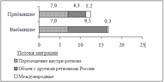 Вопрос id:414871 Тема/шкала: 21.Направление и типы миграции населения России Используя данные диаграммы, определите величину миграционного прироста населения Нижегородской области в 2008 г. Ответ запишите цифрами.