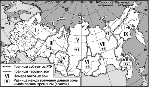 Ответ запишите цифрами. Вопрос id:414834 Тема/шкала: 20.Часовые зоны В соответствии с Законом «Об исчислении времени» и постановлением Правительства РФ с сентября 2011 г. на территории страны установлено 9 часовых зон (см. карту).