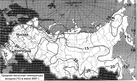 Запишите получившуюся последовательность букв. Вопрос id:414989 Тема/шкала: 22.Природные ресурсы С помощью карты сравните средние июльские температуры в городах Мурманск, Москва и Волгоград. Расположите эти города в порядке повышения средней июльской температуры.