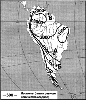 Запишите получившуюся последовательнось букв. Вопрос id:414997 Тема/шкала: 22.Природные ресурсы С помощью карты сравните среднегодовое количество осадков в точках, обозначенных на карте буквами А, Б, В. Расположите эти точки в порядке уменьшения количества осадков, выпадающих в них.