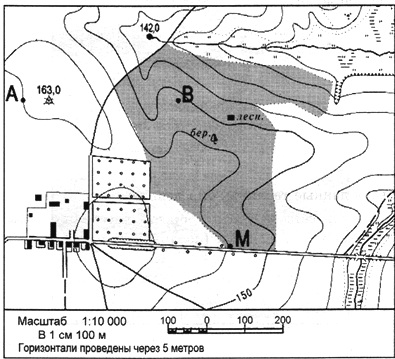 Вопрос id:415271 Тема/шкала: 26.Географические модели. Карта, план местности Определите по карте расстояние на местности по прямой от точки В до точки М. Полученный результат округлите до десятков метров. Ответ запишите цифрами.