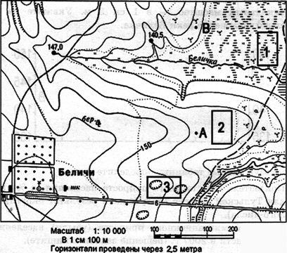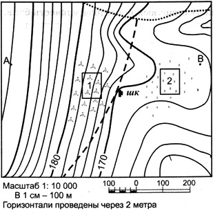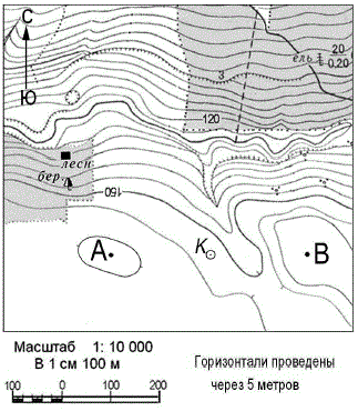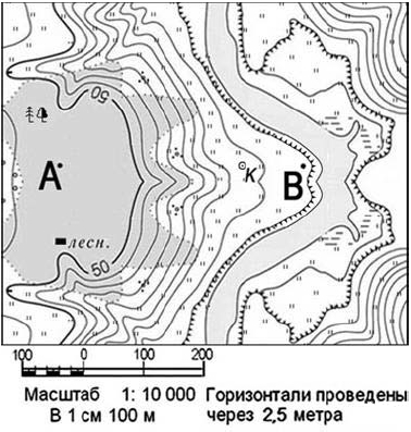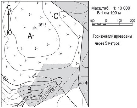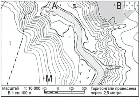 Вопрос id:415259 Тема/шкала: 26.Географические модели. Карта, план местности Ознакомьтесь с фрагментом топографической карты, показанным на рисунке.