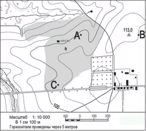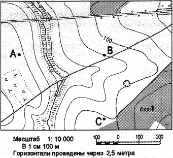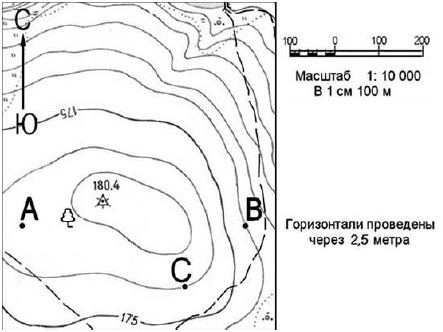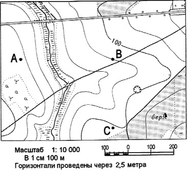 Определите по карте расстояние на местности по прямой от точки А до точки С. Полученный результат округлите до десятков метров. Ответ запишите цифрами. Вопрос id:415261 Тема/шкала: 26.Географические модели. Карта, план местности Определите по карте расстояние на местности по прямой от точки А до колодца. Полученный результат округлите до десятков метров. Ответ запишите цифрами.