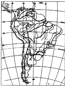?) из зоны смешанных лесов в зону тайги ?) из зоны тайги в зону широколиственных лесов ?) из зоны степи в зону тундры ?) из зоны степи в зону тайги Вопрос id:413225 Тема/шкала: 04.Широтная зональность и высотная поясность Из какой природной зоны в какую попадет путешественник, совершив перелет по маршруту А-В, показанному на карте Южной Америки?