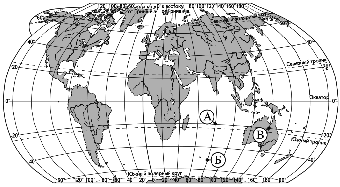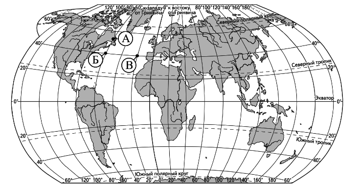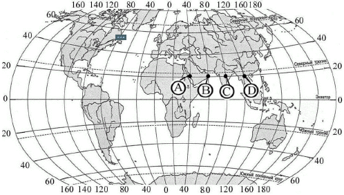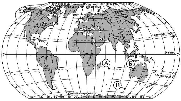 Определите, в каком из этих пунктов 15 июня солнце будет находиться выше всего над горизонтом в 7 часов утра по солнечному времени Гринвичского меридиана. Запишите обоснование Вашего ответа. Вопрос id:415715 Тема/шкала: 32.Земля как планета, современный облик планеты Определите, в какой из точек, обозначенных буквами на карте мира, 1 июля Солнце раньше (по времени Гринвичского меридиана) поднимется над горизонтом. Запишите обоснование Вашего ответа.