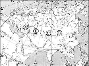 Вопрос id:415704 Тема/шкала: 32.Земля как планета, современный облик планеты Определите, в каком из пунктов, обозначенных буквами на карте Евразии, солнце находится ниже всего над горизонтом в 8 часов по солнечному времени Гринвичского меридиана. Запишите обоснование своего ответа.