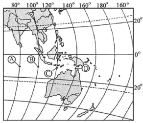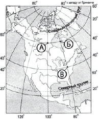 Вопрос id:415703 Тема/шкала: 32.Земля как планета, современный облик планеты Определите, в какой из точек, обозначенных буквами на карте, 25 декабря солнце раньше всего по времени Гринвичского меридиана поднимется над горизонтом. Запишите обоснование Вашего ответа.